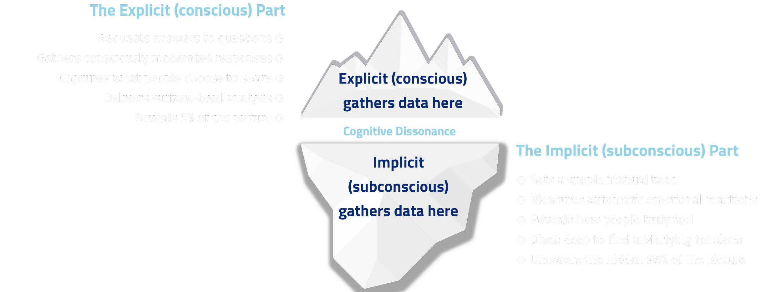 Neurotech® combines a traditional Explicit assessment (capturing the thoughts and views respondents wish to share) with an Implicit Reaction Time assessment (capturing intuitive, gut responses before they reach conscious thought, revealing authentic, unguarded sentiment).